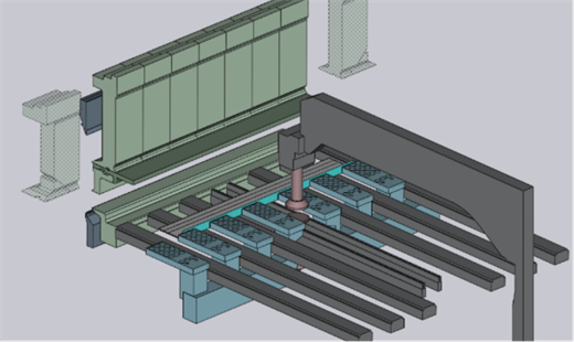 人机界面在仓库中搜索托盘ID或零件编号,TruBend Center接收来自S TOPA料库的信息,包含零件在托盘上的x和y坐标位置,上料单元利用仓库提供的信息计算堆叠高度(零件数量×板材厚度)。